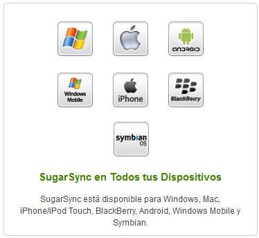 Con SugarSync podrás realizar copias de respaldos de tus archivos y sincronizarlos entre varios dispositivos ya sean laptops, PCs, Blackberry, dispositivos con Android, Symbian o Windows Mobile, incluyendo tambian iPhone y iPad .Pero eso no es todo con SugarSync podrás: