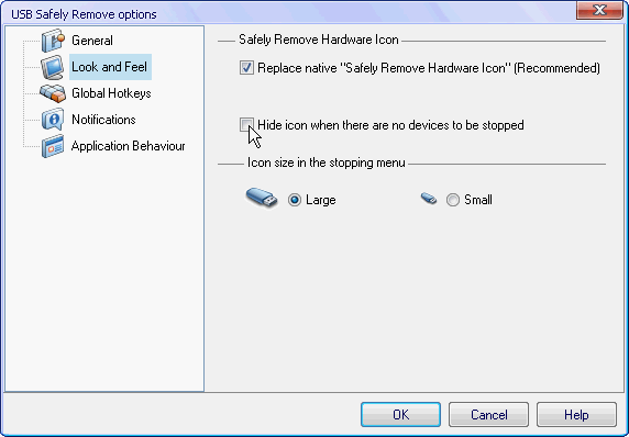 - Ningún dispositivo será detenido accidentalmente ya porque USB Safely Remove asigna el nombre correcto de los dispositivos. Además puede ocultar cualquier dispositivo que deba estar siempre conectado.